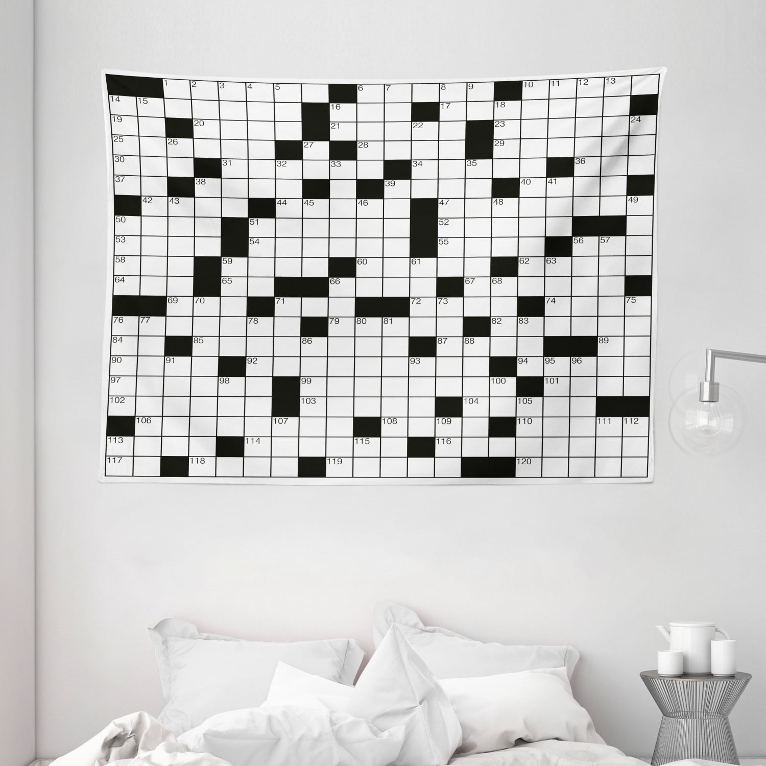 Word Search Puzzle Tapestry, Classical Crossword Puzzle with Black and White Boxes and Numbers, Wall Hanging for Bedroom Living Room Dorm Decor, 80W X ...