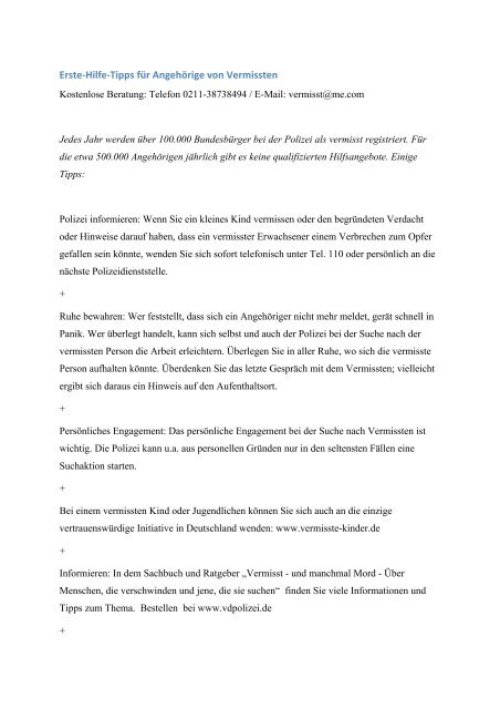 Aufenthaltsort einer vermissten person