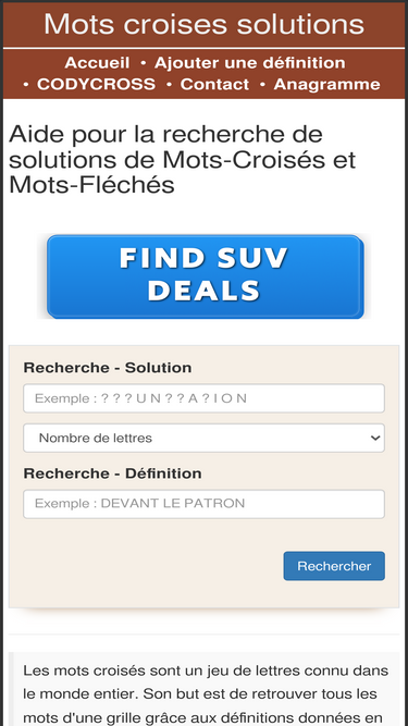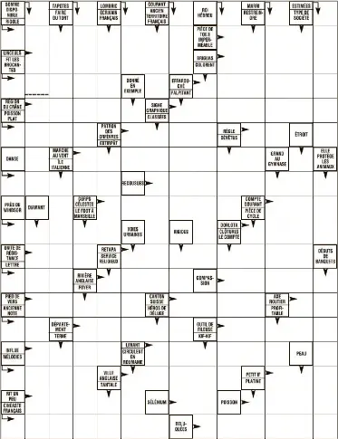 FUMEUR TRES ELOIGNE - Solution Mots Fléchés et Croisés Les solutions pour FUMEUR TRES ELOIGNE de mots fléchés et mots croisés. Découvrez les bonnes réponses, synonymes et autres mots utiles | ᐅ ELOIGNE - Mots fléchés et mots croisés - 2-12 lettres Aide mots fléchés et mots croisés. Définition: ELOIGNE . Mots . Croisés Mots Croisés Tricher au Scrabble Synonymes ... DISPENDIEUSE 12 Sujets similaires. éloigner (100%) Pour soigner sa ligne (88.61%) Quartier éloigné (80.55%) Parent éloigné (80 ... Solution de mots fléchés - FSolver Solution de mots fléchés. Vous trouverez grâce à cette interface de recherche la solution à vos grilles de mots fléchés. L'application retourne la liste des possibilités. Vous pouvez trouver les mots qui vous manquent et avoir la solution. HORS DE PRIX - 2 - 12 Lettres - Mots-Croisés & Mots ... HORS DE PRIX - 2 - 12 Lettres - Mots-Croisés & Mots-Fléchés et Synonymes.