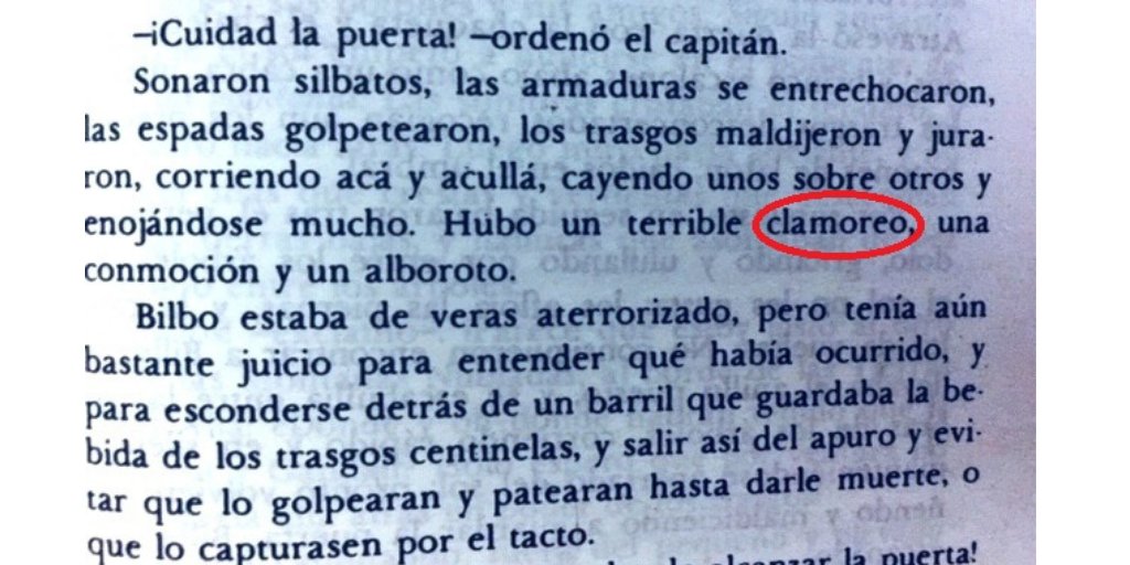 Encuentra aquí información de El hobbit; John Ronald Reuel Tolkien... Clamoreo: Clamor repetido y continuado. Bulliciosa: Que produce bullicio: Ruido y rumor que causa la mucha gente.