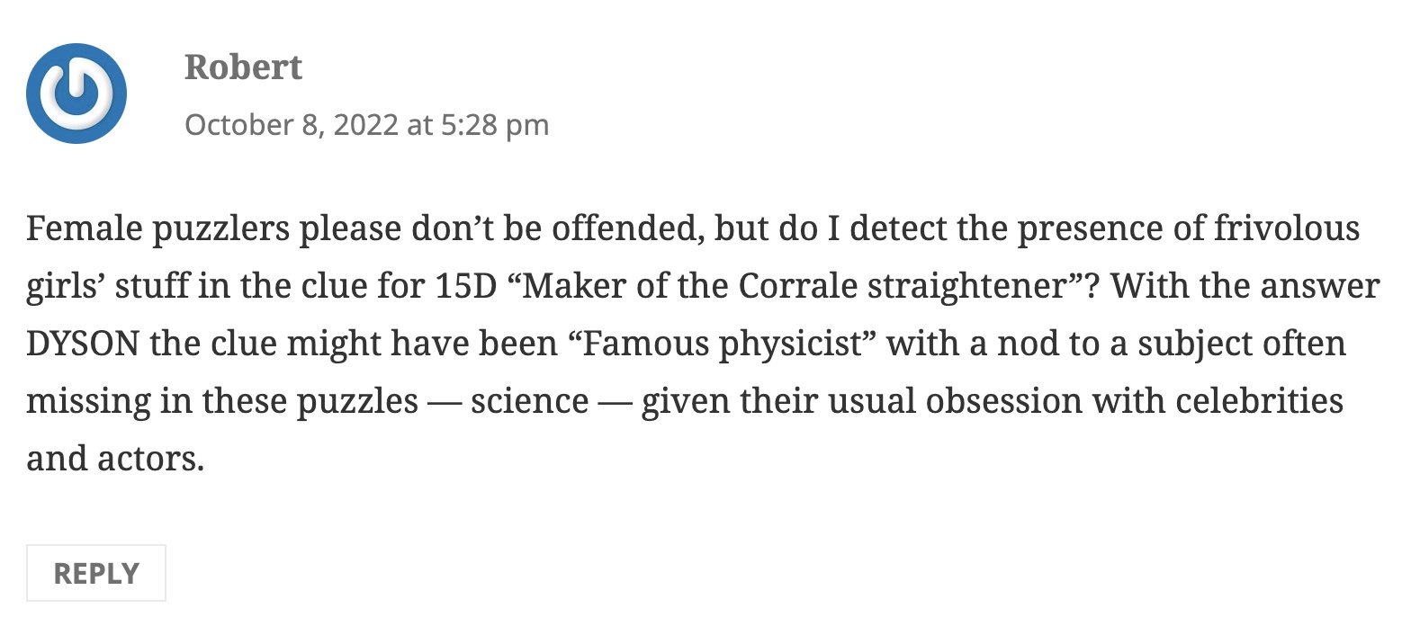 SHOCK crossword clue - All synonyms & answers WebAll solutions for "shock" 5 letters crossword answer - We have 3 clues, 144 answers & 400 synonyms from 3 to 22 letters. Solve your "shock" crossword puzzle fast & easy with the-crossword-solver.com Crossword-Solver: Enter Crossword Clues & Find Answers WebNov 23, 2022 · 2018: Despite the fact that female editors have been important to crossword construction for many years, there has been a distinct drop in female crossword editors and constructors in the Shortz era. To combat this, two different projects — Women of Letters and The Inkubator — seek to highlight female crossword creators . Port, for a mariner Crossword Clue Answers, Crossword Solver WebNov 05, 2022 · A rooster crowing before midnight, it was once believed crossword clue With 34-, 36- and 37-Across, ulterior motive … or a hint to the word concealed in each starred clue's answer crossword clue Chewy stuff crossword clue Announcement pending, on a schedule: Abbr. crossword clue Head gesture crossword clue